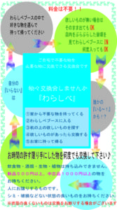 こんなものもあるんだ~ってビックリしました  ( ;∀;) 誰かのいらない物でも「欲しかったの!」「こういうの探してた~」と言われて交換されてました。時間ごとにおかれてる物が変わるのも面白かったです。また、近いうちに開催します。その時まで不要な物集めておいてくださいね(笑)