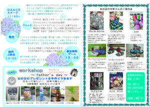 3回目は6月にDanceの発表会を兼ねてDanceステージを開催しました。ちびっこのダンスや迫力のあるダンス、フラダンスなどでイベントを盛り上げて頂きました♪