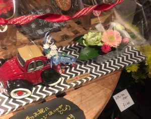 また、パーティーの受付などにおいておくと、お迎えするとゲストに笑みがこぼれそうですね。車は貯金箱になります
